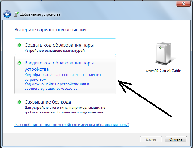После этого появится предложение ввести код образования пары - выбираем пункт "Введите код образования пары устнойства".